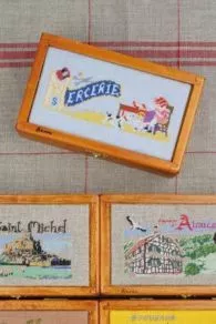 Brodés au DEMI-POINT, le dessin Mercerie de l’album n° 909, ainsi que tous ceux de l’album n° 910 sont parfaitement adaptés au couvercle de cette boîte.