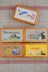 Le corps et le cadre du couvercle de cette boîte sont faits en bois d’aulne, le dessus du couvercle est en contreplaqué de bouleau. Deux marquages Sajou en noir : l’un sur le rebord du couvercle, l’autre sur le côté. Un carton est fourni, afin que vous puissiez y monter la broderie.