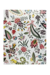 Cette boîte à couture garnie met à l’honneur les Coquecigrues, cet étonnant motif floral exotique sur fond blanc, qui est la réédition d’un tissu autrefois imprimé à la manufacture Oberkampf, à Jouy,
