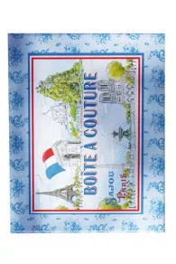 Cette boîte à couture contient une sélection de nos produits sur le thème de Paris et de la tour Eiffel.