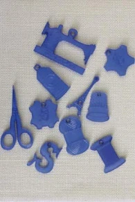 Breloque évoquant une machine à coudre façon opaline bleu.