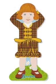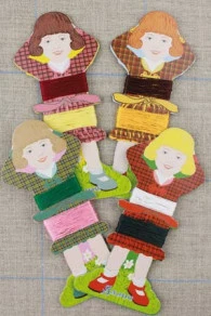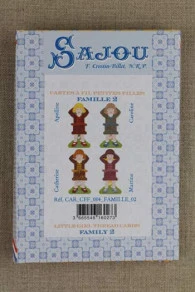 Les petites filles de la famille 2, Caroline, Catherine, Martine and Apolline, sont vêtues d’un petit costume écossais à col de dentelle. Ces délicieuses petites filles modèle sont de grandes cartes, qui vous permettront de ranger vos restes de fils et de rubans d’une manière très amusante. Deux couleurs de fil peuvent être rangées sur la même carte : une au-dessus de la ceinture, l’autre en dessous. Ces cartes sont imprimées de manière différente au recto et verso, sur un carton épais de 2 mm d’épaisseur.