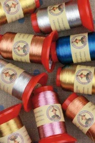 Les cinq coloris argent (n° 122), or (n° 102), vieil or (n° 110), cuivre (n° 130) et bronze (n° 145) existent en plus gros, n° 15, trois brins de n° 40 retordus ensemble. Ils sont présentés sur des fusettes de 225 mètres.