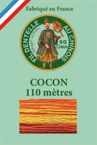 Ce fil couleur pour dentelle est un coton retors 3 bouts (ou brins) gazé et mercerisé (l’équivalent du n°80 de chez DMC). Sa présentation en petits cocons de 5 grammes (110 mètres environ) permet une utilisation facile et agréable : le fil se tire par le milieu, ce qui évite les nœuds. Chaque cocon est étiqueté.