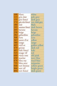 Une carte de coloris imprimée donne un aperçu des 23 coloris disponibles.