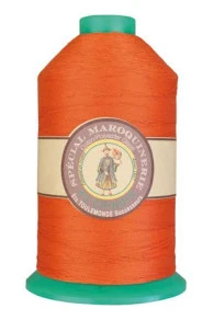 Polycoton glacé Spécial Maroquinerie 50/3. Le « 3 » signifie que le fil est retordu en trois bouts, ou brins.