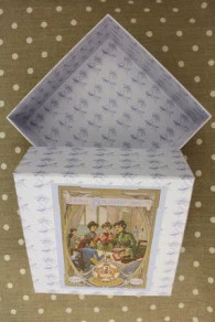 Cette boîte est recouverte à l’extérieur et à l’intérieur d’un de nos papiers bleus dont le motif peut varier.