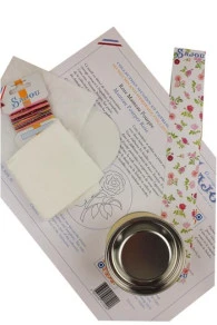 Pour le montage, vous aurez besoin d’un pinceau, d’un peu de colle à tissu et d’un chiffon propre. Vous trouverez ci-dessous une vidéo vous montrant comment réaliser la broderie au point avant et une autre pour le montage de la boîte.