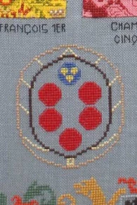 Cet ouvrage de broderie au point de croix se présente sous la forme d’une grande affiche en couleurs mesurant 68 x 80 cm. Au recto se trouve la grille, au verso toutes les informations historiques ainsi que les explications pour la réalisation de la broderie.