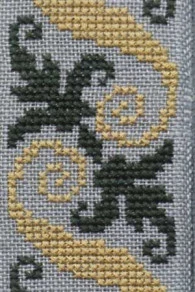 NB: une petite erreur s’est glissée dans le texte de la grille relatif aux tissus du château. Il est indiqué que le tissu du Cabinet vert doit être brodé sur du lin tilleul, alors qu’il s’agit bien du coloris mousse.
