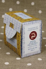 Cette boîte à broder représentant une hermine, un des symboles de la reine Claude de France, est dérivée de la grande grille de point de croix évoquant l’univers du château de Chenonceau.