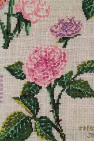 Brodé sur du lin 12 fils, cela donne un ouvrage de 30 cm sur 30 cm.