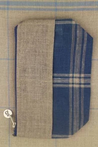 Petite trousse en lin avec zip à broder au point de croix. Le nom de Sajou tel qu’il est représenté est inspiré par le logo figurant sur les grands albums de broderie blanche et de point de filet.