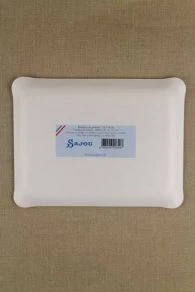 Le motif est pris entre deux épaisseurs d’acrylique différentes, le dessus est très brillant et l’envers est blanc.