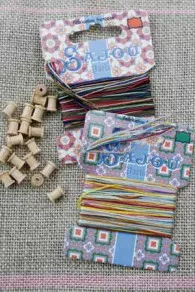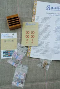 – 20 bobines miniatures et deux cartes miniatures sur lesquelles sont embobinés les fils servant à habiller ces bobines, et une petite fiche explicative pour réaliser ces dernières,