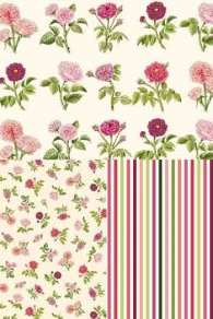 Pour ce sac rectangulaire, nous avons choisi deux tissus de notre collection Les roses de Joséphine : le tissu principal et le coordonné n° 2, motif à rayures verticales. Les anses mesurent 62 centimètres et sont faites dans le tissu principal.