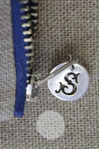 Cette trousse se ferme par une belle fermeture à glissière en métal sur laquelle est attaché un joli médaillon argenté « S » de Sajou. Une griffe « Maison Sajou » bleue se trouve sous la bande à broder.